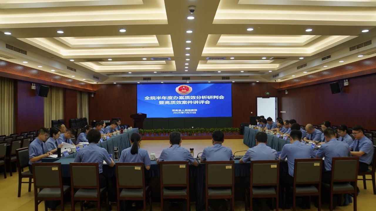 为学习贯彻全市检察长座谈会暨半年度办案质效分析研判会精神,推动各项检察工作再上新台阶,7月25日上午,苍南县检察院召开全院上半年度办案质效分析研判会暨高质效案件讲评会,院班子成员、检委会专职委员以及全体中层干部、员额检察官参加会议。